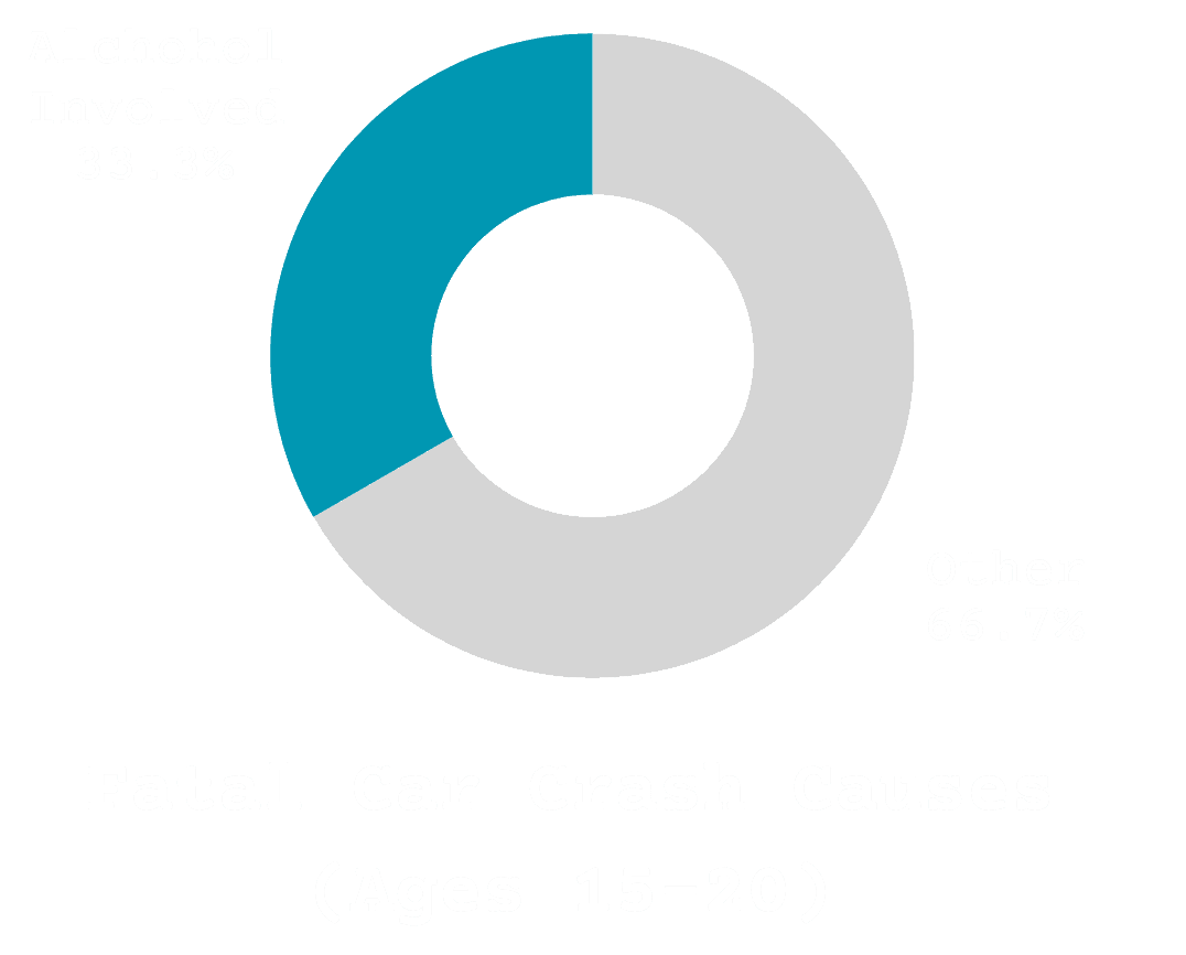 Drunk driving is a significant issue among teens and young adults in the United States, with one-third of fatal car crashes among teens aged 15–20 involving alcohol and around 1,000 fatalities each year.
